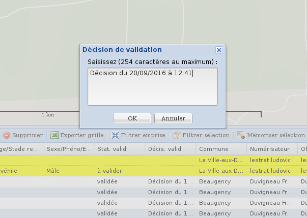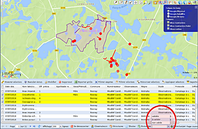 - commencez par sélectionner les observations à valider,