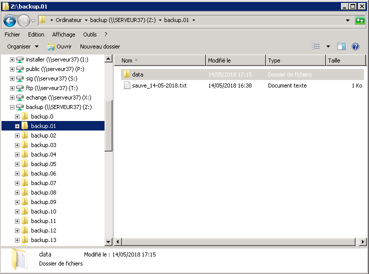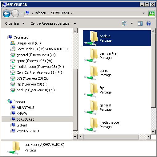 Un nouveau partage sur vos serveur s’appelle "backup". Une lettre réseau peut lui être associée "Z :" (voir dernier chapitre de l’article).