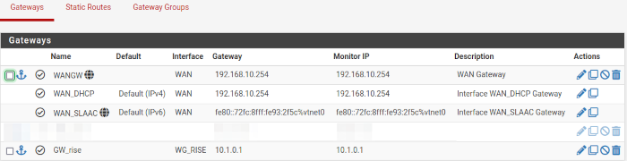 - la Gateway vers le pfsense100 a pour IP cible 10.1.0.1