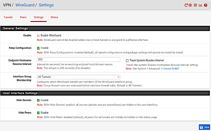 - menu VPN->Wireguard, commençons par activer wireguard dans l’onglet "settings",