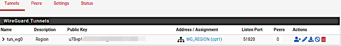 - public key : copier ici la public key provenant du pfsense 100, au niveau du tunnel "Region",