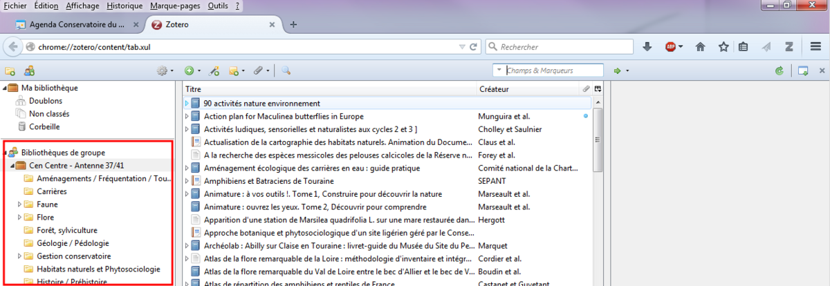 qui tourne en haut à droite de Zotero).