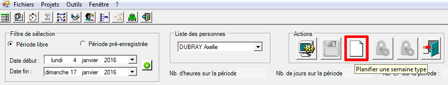 Afin de faciliter et rendre la saisie plus rapide, on peut créer des semaines types en cliquant sur l’icône représenté par une feuille blanche.