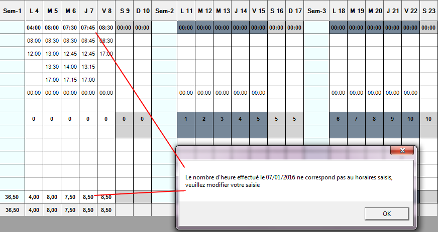 N.B. : dans l’attente de l’import de la programmation en début d’année, ce blocage de saisie est retiré provisoirement pour permettre la saisie des horaires