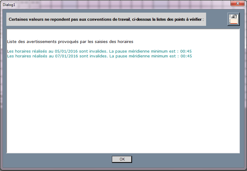 Attention, la saisie se fait au format horaire hh:mm.