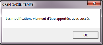 Une fois l’enregistrement fait, une fenêtre de validation apparaît pour confirmer la mise à jour de la saisie.