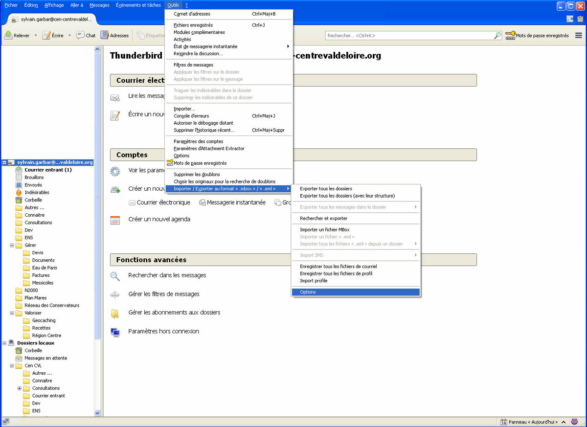 Import des dossiers mails de Thunderbird vers Zimbra :