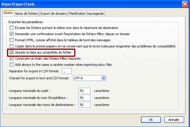 Cocher la case Ajouter la date aux propriétés de fichier puis cliquer sur Ok